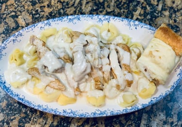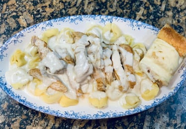 Indulge in the delightful flavors of a 3 cheese cream sauce over penne topped with grilled chicken. This tantalizing dish combines the rich creaminess of three types of cheese with perfectly grilled chicken