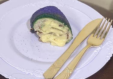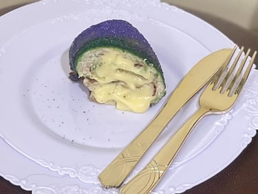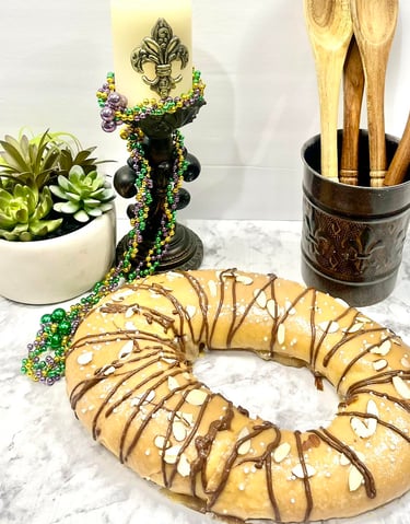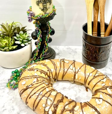 Don't forget to try our famous King Cakes, a Mardi Gras tradition filled with cinnamon, and many other flavors to choose from, then topped with colorful icing.